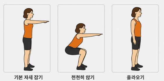 다음은 초보자도 쉽게 따라 할 수 있는 스쿼트 가이드입니다.