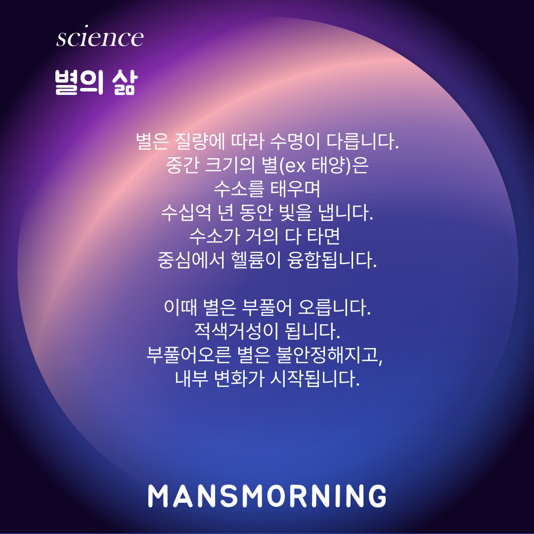 연료가 모두 소진되면 더 이상 에너지를 내지 못하고 별의 생은 마무리됩니다.